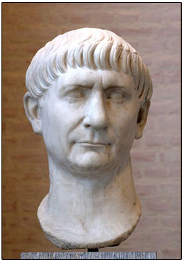 Trajan (53 CE – 117 CE) erected his column to commemorate his victories over Dacia, the land across the Danube now known as Romania. Trajan first attacked Dacia in 101 CE, and again in 105 CE, when the area was incorporated into the Roman Empire as a new province. The column was completed in 113 CE. Trajan returned from Dacia with vast amounts of war bootie, which he used to create a new Forum. Laid out like a military camp, Trajan’s Forum had the column as its centrepiece (Figure 2). The column was depicted on the reverse side of a silver denarius coin, with Trajan’s image on the obverse side (Figure 3).