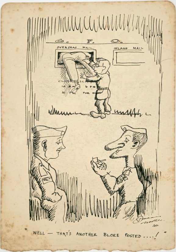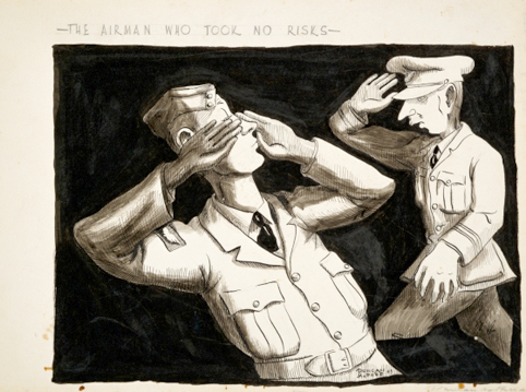 His drawings often poke gentle fun at military and political leaders and institutions. Many of his cartoons have a gently satirical, almost Pythonesque quality (Figures 3 – 5). Most of his visual barbs were aimed at the New Zealand army but sometimes he lampooned the Americans too (Figure 3).