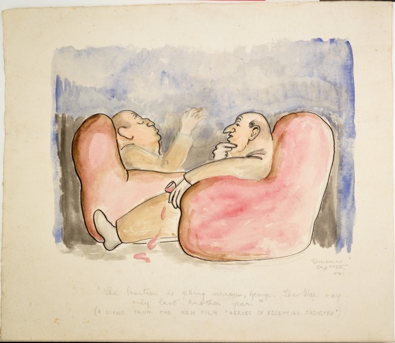 At times his work transcends satire to become pointed attacks on politicians and war-mongers (Figure 6), what McPhee perceived as the public living comfortable lives back Home (Figure 7), and the brutal insanity of war in general (Figure 8 and 9).