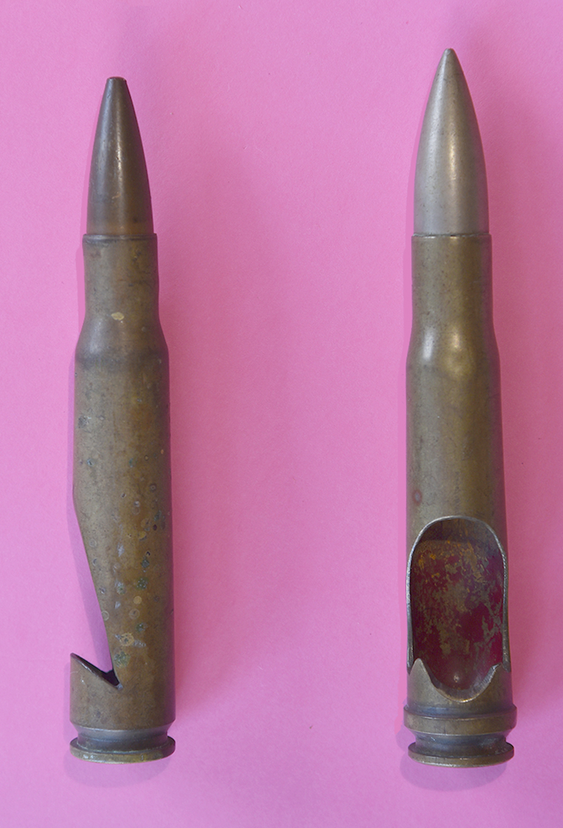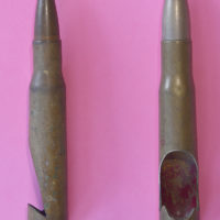 An even simpler device, usually made from an armour-piercing 50 calibre cartridge, was the bottle opener, a handy device to have when beer rations came around. These were made by “delousing” a 50 calibre round, joining the projectile back to the empty cartridge case, and cutting a notch in the base of the cartridge case. With the implement turned upside down, the notch could then be used to lever a bottle top from an unopened bottle.