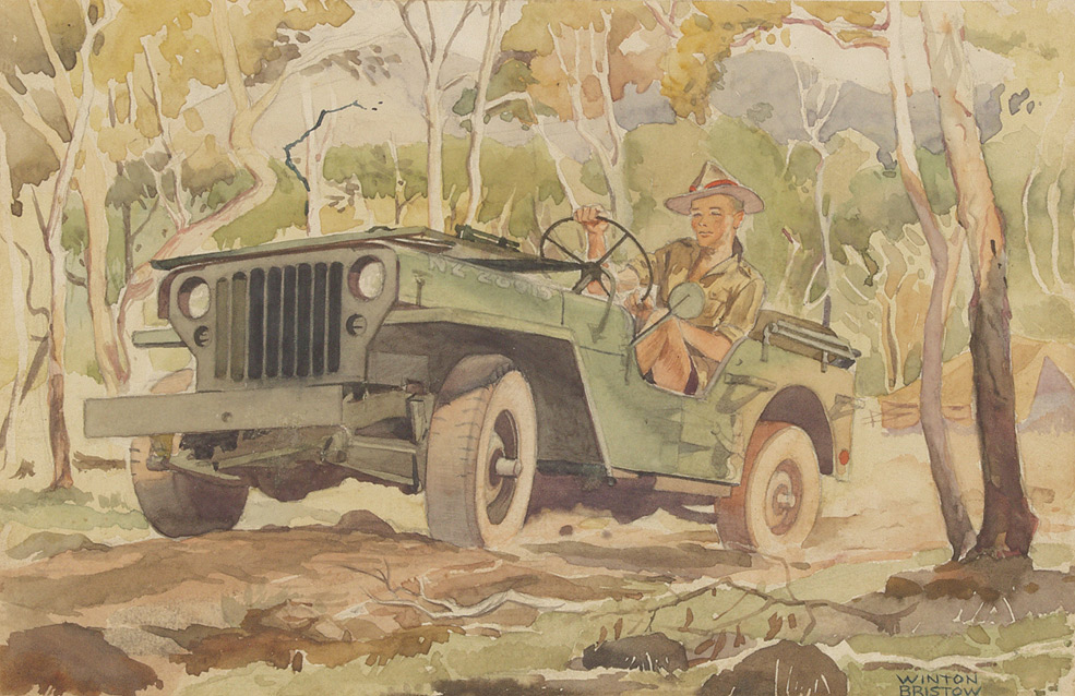 A beautifully and perhaps more skilfully executed watercolour painting shows another kind of idealisation: a pristine Jeep being driven by an immaculately uniformed New Zealand soldier, made by Charles Winton Bristow (Figure 17). Bristow was from Herne Bay in Auckland and a Private. Like Harry Stone, he was a gunner, but rather than being in an anti-tank unit, he was with the New Zealand Artillery.