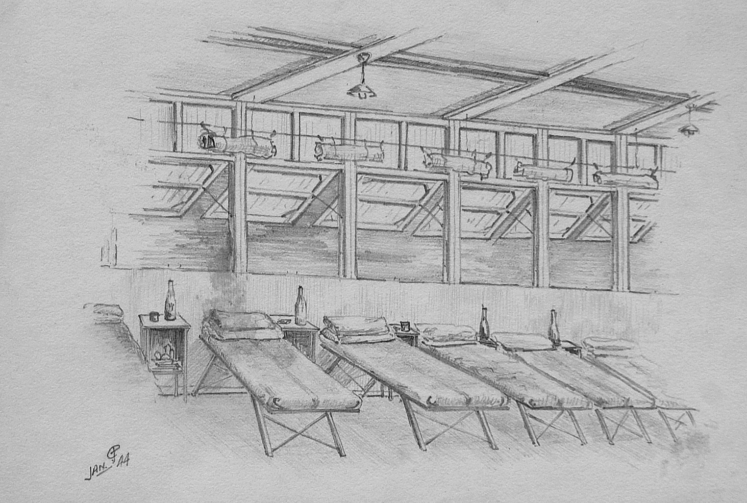 Before he enlisted, Park had been a trained draughtsman, although the record does not indicate whether he was working as such at the time. This perhaps explains the precision and discipline evidenced in some of his work, such as the drawing of the row of bunks in the barracks in Figure 9, with its careful attention to double point perspective and everything neatly laid out as if for inspection. Clearly Park was a man who appreciated tidiness.