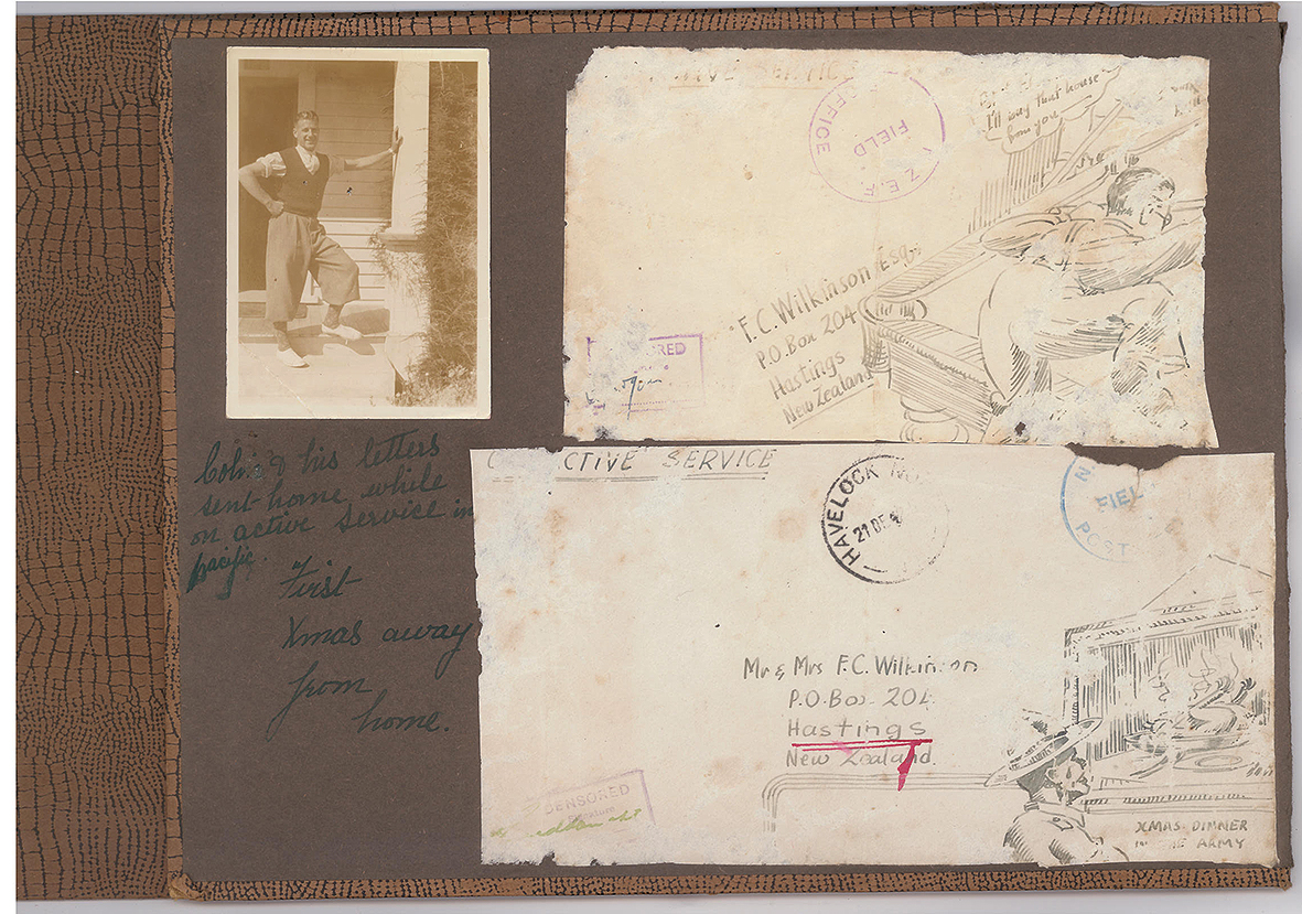 One of the most prolific New Zealand envelope soldier-artists whose work has survived was Colin Wilkinson (1914 – 2004) (Figure 51), who was a Corporal in the 34th Infantry Battalion. Wilkinson grew up in Havelock North and soon after leaving school began work for Cliff Press printers in Hastings and subsequently for Pictorial Publications in Hastings as Art Director. He continued to work as an amateur artist after the war and exhibited work at the Havelock North Community Centre.