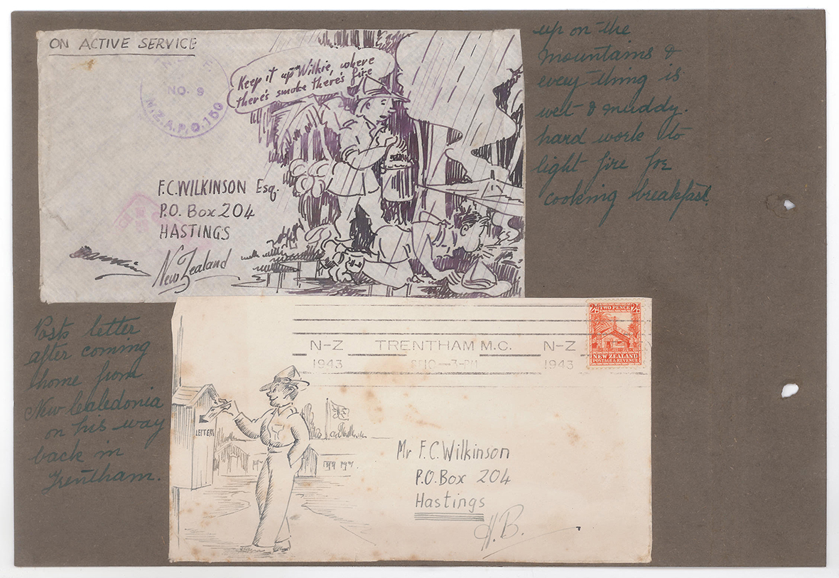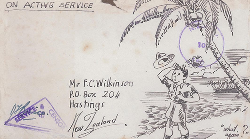 This art-form was not a feature of just New Zealand servicemen, or even just Pacific War servicemen. Decorated envelopes appeared in correspondence from troops stationed in most overseas areas of conflict to family and friends at home. The practise seems to have been especially common amongst American soldiers in the Pacific, possibly because the popular image of life in the South Seas lent itself to lighthearted comic strip imagery.