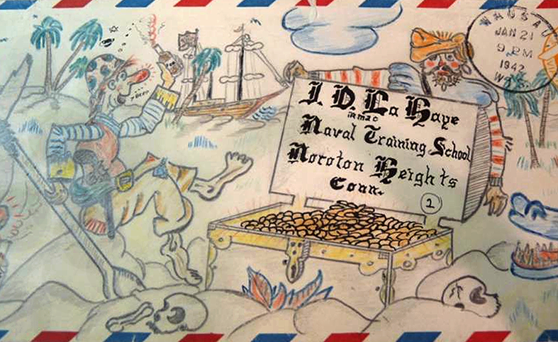Decorated Envelopes: A particular art-form that seems to be unique to World War 2 is the decorated envelope. Mail delivery was reasonably frequent and swift in the Pacific in both directions: from and to home. The positive effects on morale of receiving regular news from home for the troops, as well as for those at home receiving confirmation that all was well for loved-ones overseas, was well recognised by the authorities. Family news kept the men in touch as well as providing a much needed relief from boredom and the ongoing sense of isolation.
