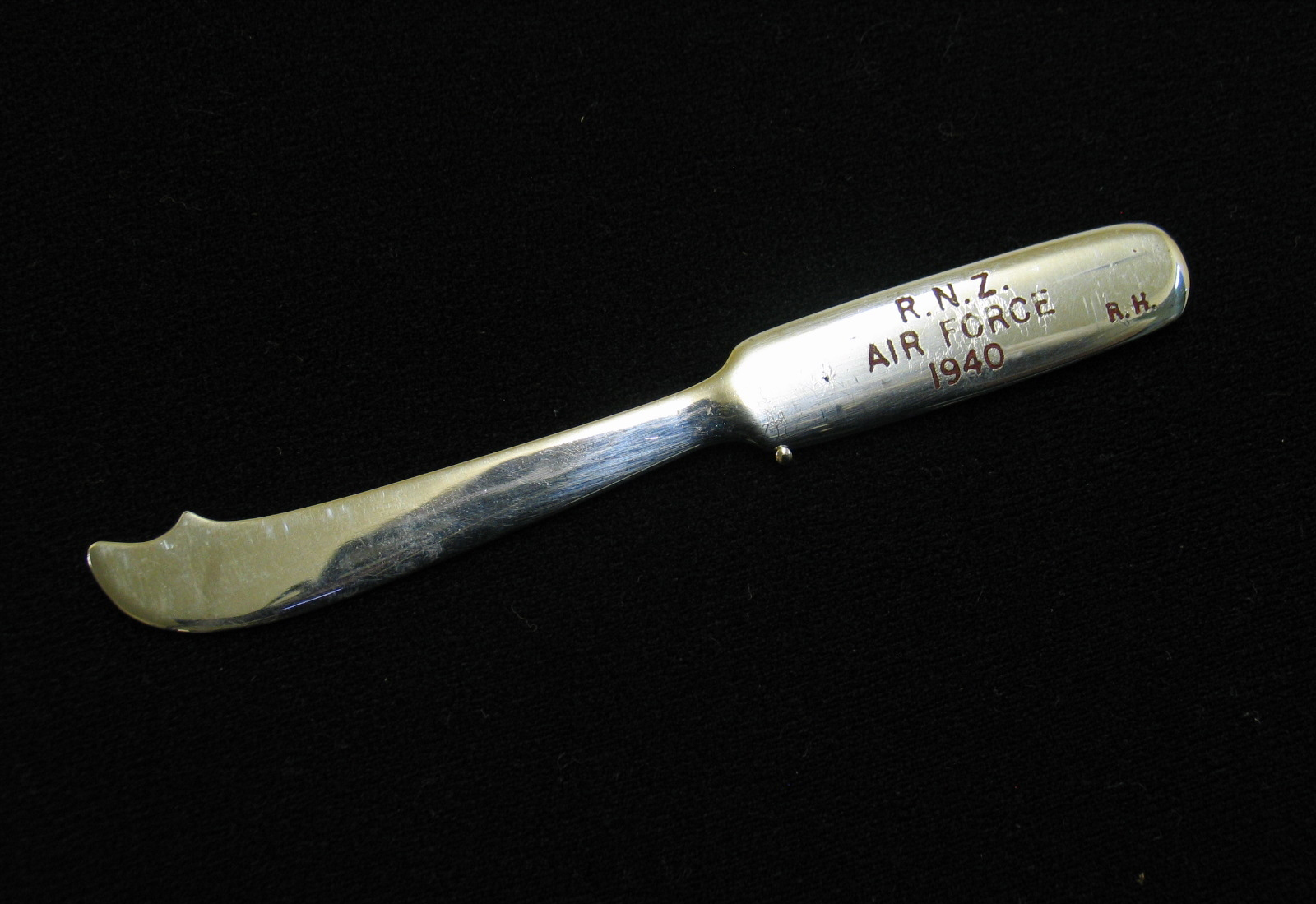 Like so many other servicemen in both World Wars, Hermanns created the almost obligatory letter-knife (Figure 2), embellished with R.N.Z. AIR FORCE and his initials, but it is in no way a letter knife cobbled together from spent bullet cartridges, but a sturdy, functional object made from one piece of metal.
